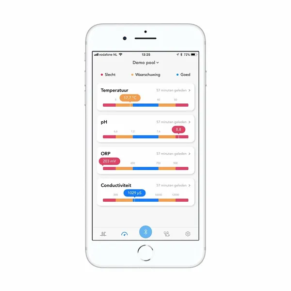 Het is niet voor niets dat de Astral BlueConnect Go een slimme watertester wordt genoemd. Deze watertester is door middel van de optionele WiFi connector altijd verbonden met het internet. Let op: deze WiFi connector wordt niet standaard meegeleverd. Download de BlueRiiot BlueConnect app en je bekijkt alle huidige waterwaarden vanuit je luie stoel! De app stuurt pushmeldingen wanneer bepaalde waarden niet meer goed zijn. Lees meteen af wat en hoeveel je toe moet voegen en je zwembadwater is in een mum van tijd weer op peil!