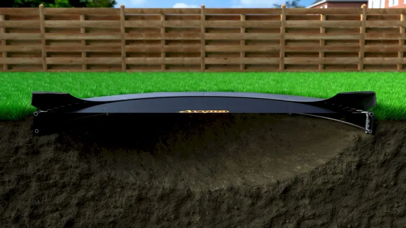 Doordat dit een flatground model is, is deze trampoline volledig weggewerkt in de grond. Hierdoor is deze optimaal verwerkt in je tuin en staat hij dus erg mooi. De AirStream springmat van deze trampoline is extra luchtdoorlatend, waardoor de lucht tijdens het springen kan ontsnappen. Dit zorgt voor een soepele en hoge sprong. Bij lagere kwaliteit flatground trampolines zul je merken dat de sprong heel stroef is, omdat de springmat niet genoeg lucht doorlaat. Het frame zelf wordt 22 cm in de grond geplaatst en is voorzien van een PVC bekisting die de trampoline extra beschermd tegen bijvoorbeeld vuil, (regen)water en insecten.
