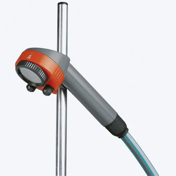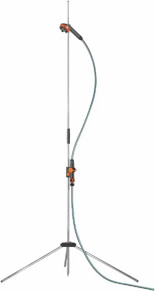 De Gardena douche is dankzij het driepootstatief gemakkelijk neer te zetten op iedere gewenste plek. De flexibele en afneembare douchekop, die is aangesloten op een 1,3 meter lange slang, geeft je hetzelfde douchegemak als de douche in je badkamer.