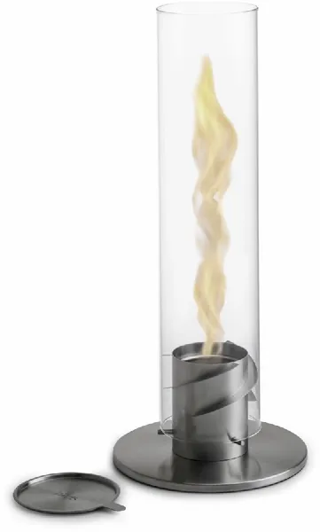 De Spin 120 bestaat uit een roestvrijstalen behuizing en een glazen cilinder met een diameter van 12 centimeter. Dit tafelvuur werkt op bio-ethanol dat onder in de behuizing in een blikje verbrand. Het blikje bio-ethanol is eenvoudig en veilig aan te steken door de glazen cilinder te verwijderen en na het ontsteken weer terug te plaatsen. Met dit tafelvuur kun je circa een uur genieten van een roterende vlam. Wil je de vlam voortijdig doven? Dan kan dat eenvoudig en veilig door de meegeleverde blusdeksel op de glazen cilinder te plaatsen.