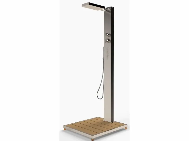 De stijlvolle Elba vorstvrije buitendouche is gemonteerd op de bijgeleverde WPC vloerplaat. Zo blijft de douche van 36 kilo stevig op zijn plek staan. De douchekop hangt op een hoogte van 200 cm en de totale hoogte van de douche is 210 cm. Zo geniet het hele gezin van een verfrissende douchebeurt, gewoon in jullie eigen achtertuin!