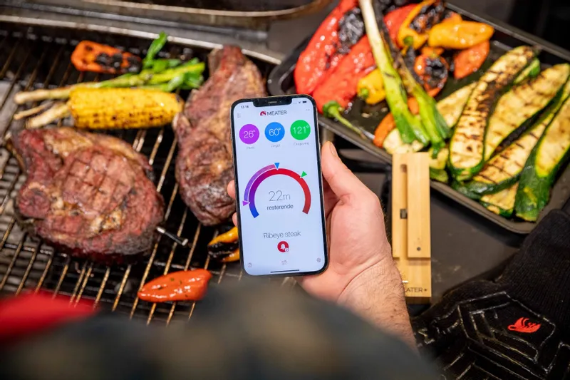 De revolutionaire thermometers van MEATER veranderen de manier van barbecueën en grillen! De MEATER Plus is de eerste echte draadloze slimme thermometer en een must-have voor de echte bbq liefhebber. De MEATER+ heeft een bluetooth bereik van 50 meter en is te monitoren via een app. Hierdoor kan je gemakkelijk vanaf je telefoon of tablet de temperatuur in de gaten houden. Samen met de MEATER app maakt deze thermometer het mogelijk om de sappigste gerechten klaar te maken op de barbecue of grill. De gewenste temperatuur en grill-tijd is gemakkelijk in te stellen via de app waardoor bakken en grillen een zacht gekookt eitje wordt.