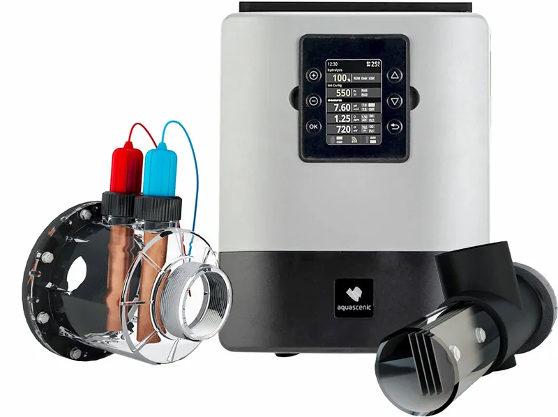 De aanvullende koper ionisatie verhoogt de kracht van de hydrolyse enorm. De anti-bacteriële en algen dodende eigenschappen van koper ionisatie worden aangevuld met de hoge oxidatie kracht van het hydrolyse systeem wat samen resulteert in een natuurlijke waterzuivering zonder toevoeging van chemicaliën!